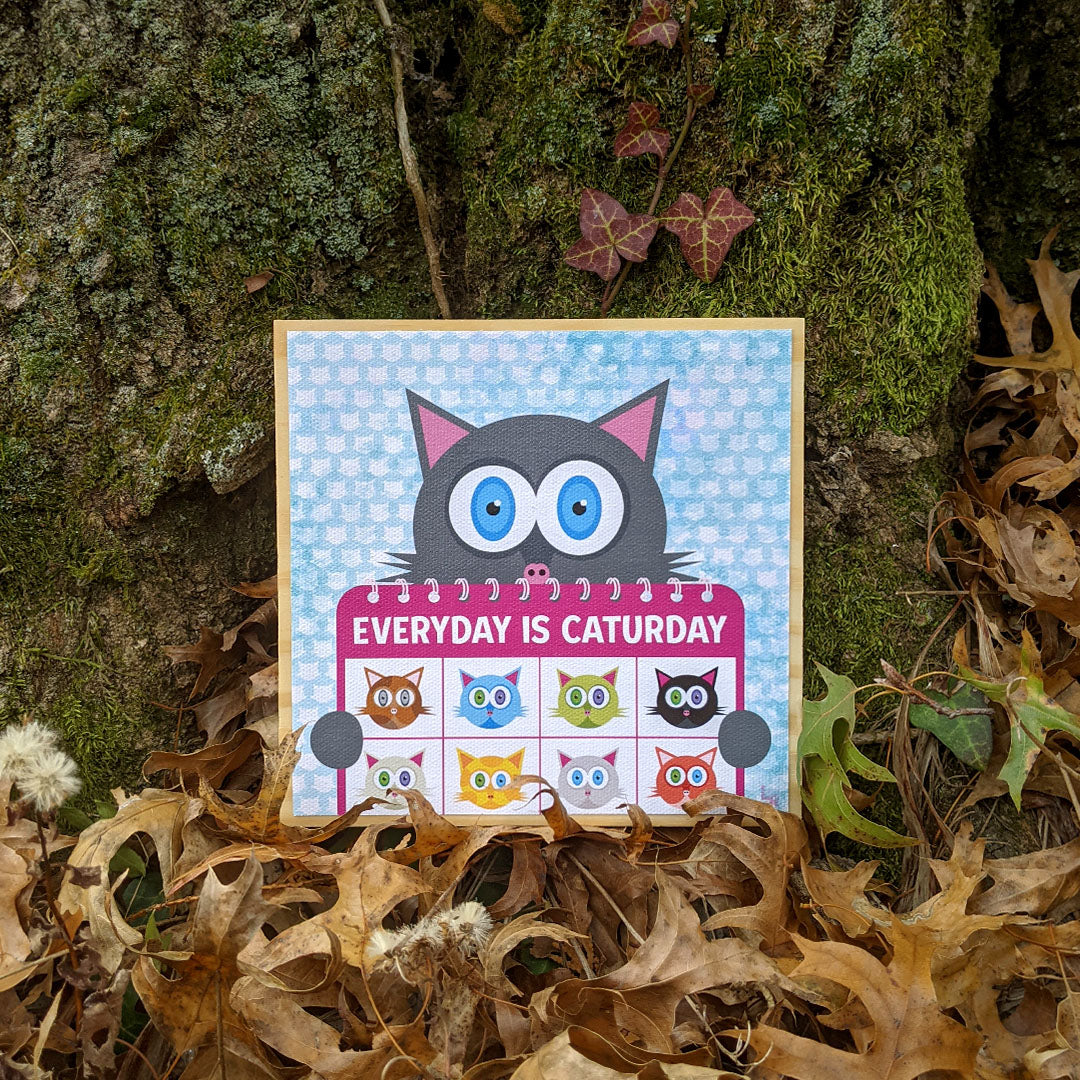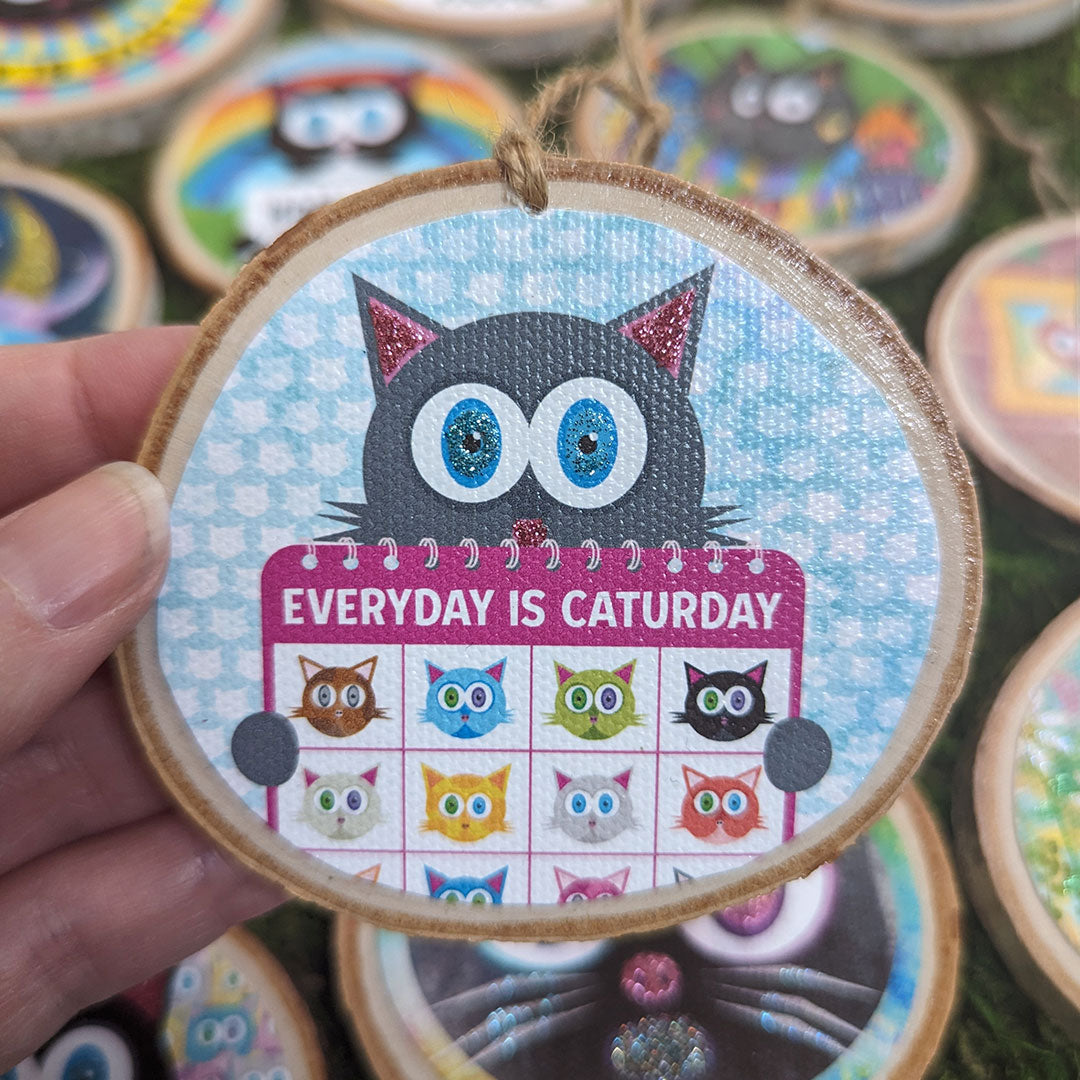 This is so much fun! I love the thought of everyday being Caturday. The colors on this wood plaque are vibrant and the kitty faces are so cute. It's of excellent quality.
