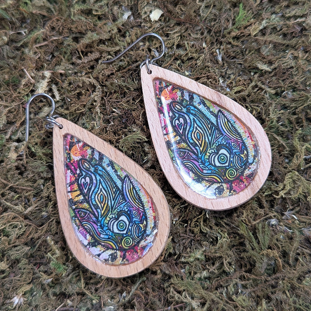 "Chai - Magical Doodles" Judaica Art Resin Earrings